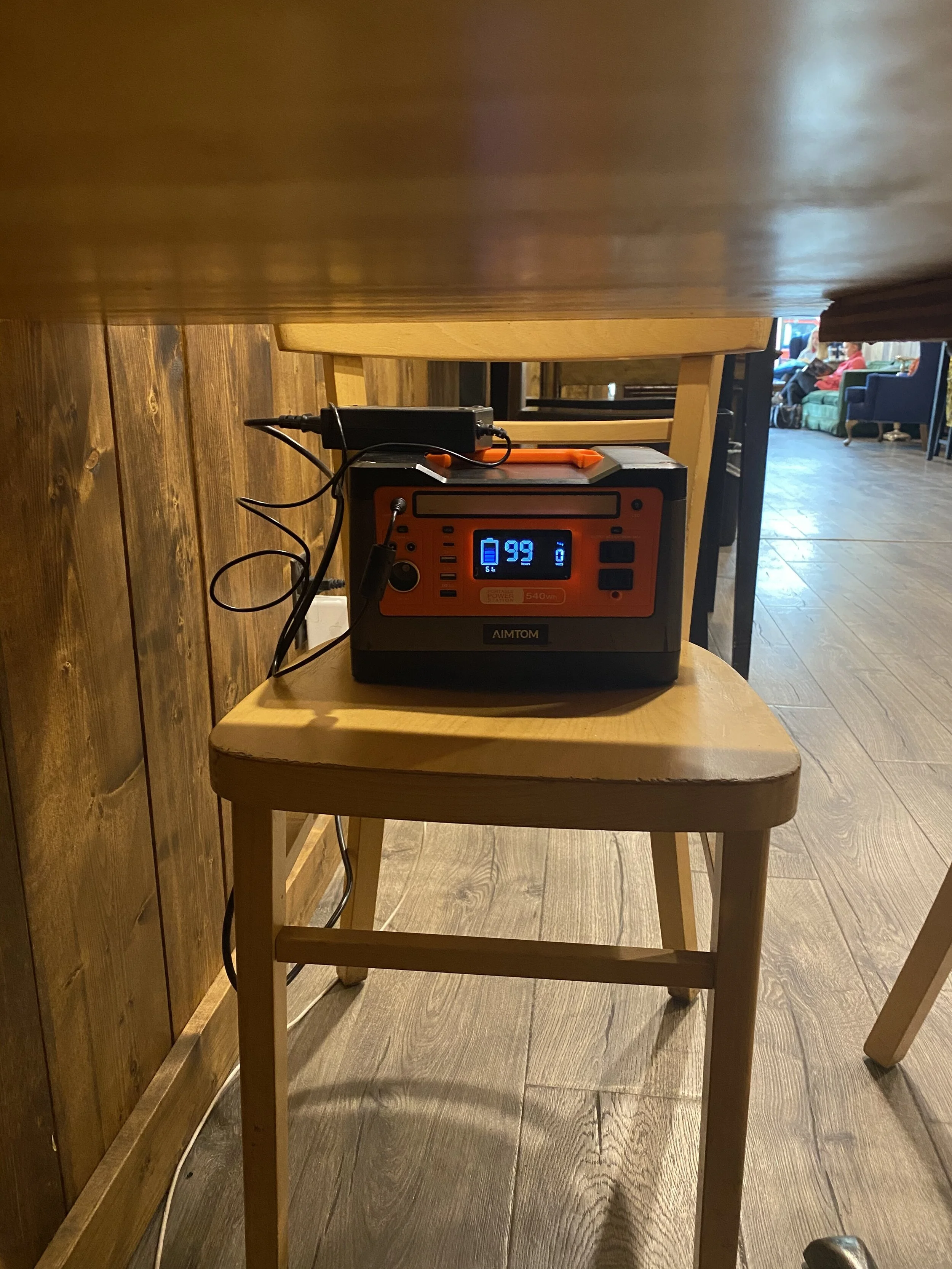 Having a power source is almost as important as water. Once I walked into a coffee shop the first thing I looked for was a power plug near a table, that I could charge my laptop. I also carry around a large portable battery and I use to keep the refrigerator running overnight, so I don’t drain the car battery. I charged that battery every morning at the coffee shop. I never ran into any issues with charging my stuff anywhere, coffee shops came in pretty clutch.